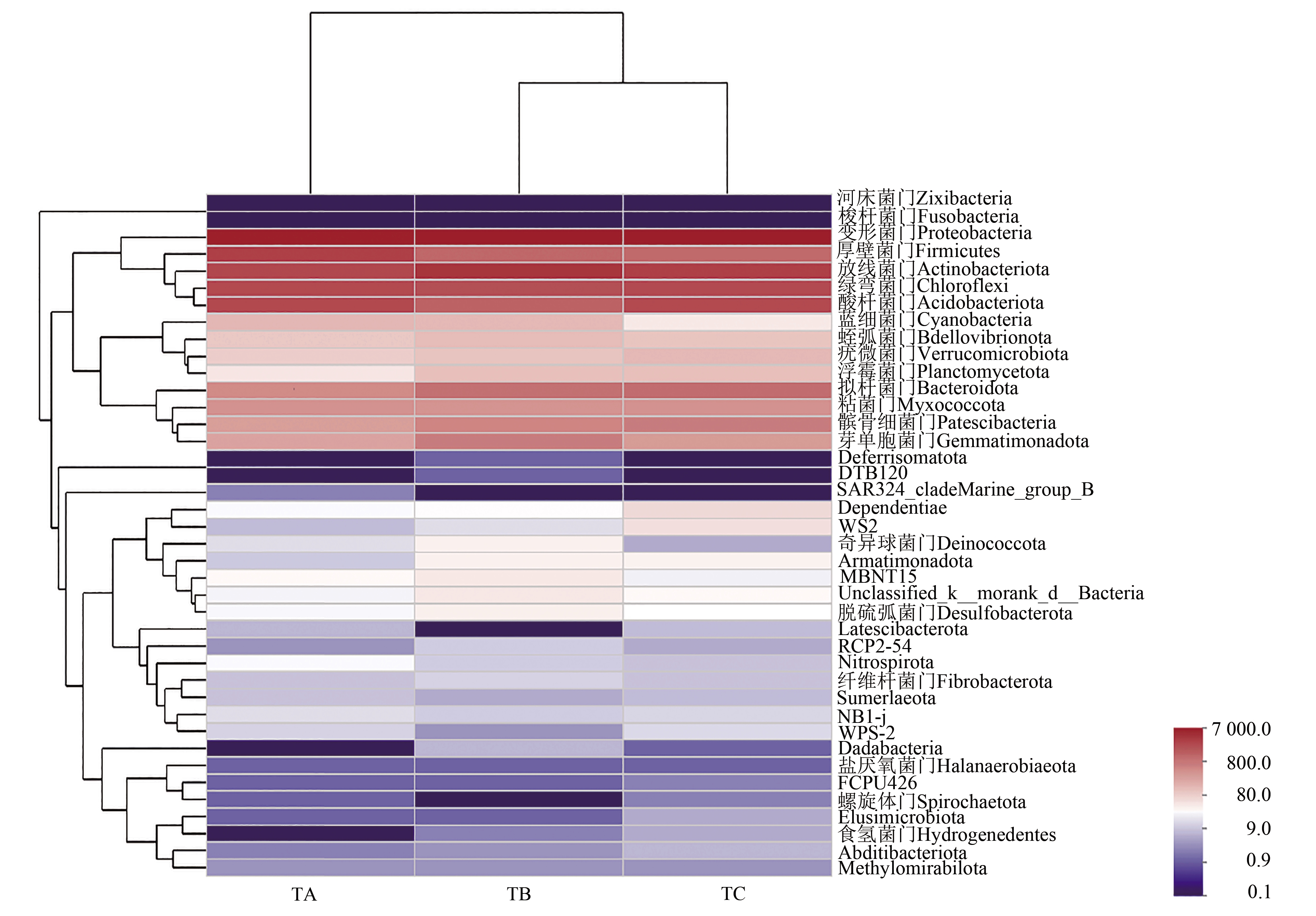 为研究整合微生物组菌剂(整合菌剂)对番茄植株生长的影响,采用大棚基质栽培法,设置种植过一茬番茄的旧基质(TA)、旧基质+10%整合微生物组菌剂(TB)和未种植过番茄的新基质(TC)共3个处理,测定不同处理下番茄植株的生长及根际细菌群落多样性。结果表明,与TA处理相比,TB处理能够显著促进番茄植株生长,但对旧基质的营养状况无显著改善,因此使用时应配合其他(生物)有机肥等,以改善基质微生物种群结构和营养水平。采用16S rRNA高通量测序技术分析番茄根部基质中细菌群落多样性,共检测到细菌40门、121纲、291目、438科和748属,丰度最高的菌门是变形菌门(35.24%~38.25%),其次为放线菌门(13.20%~20.60%);TB处理显著提高了放线菌门的丰度,降低了厚壁菌门的丰度,但对基质细菌群落的多样性和丰富度影响较小。放线菌门和变形菌门与基质全钾、全氮和有机质含量呈正相关,与总磷和pH呈负相关;厚壁菌门、绿弯菌门和酸杆菌门与总磷和pH呈正相关,与全钾、全氮和有机质含量呈负相关。基质理化因子中的pH、全氮、总磷和全钾含量对基质细菌群落结构影响显著,其中全氮是影响基质细菌门水平群落结构的最重要环境因子。因此,在番茄基质重复使用过程中,整合微生物组菌剂应配合施用适量的氮肥,有利于提高基质养分含量及改善基质微生物群落结构,进而保障番茄基质生态系统的良好发展。