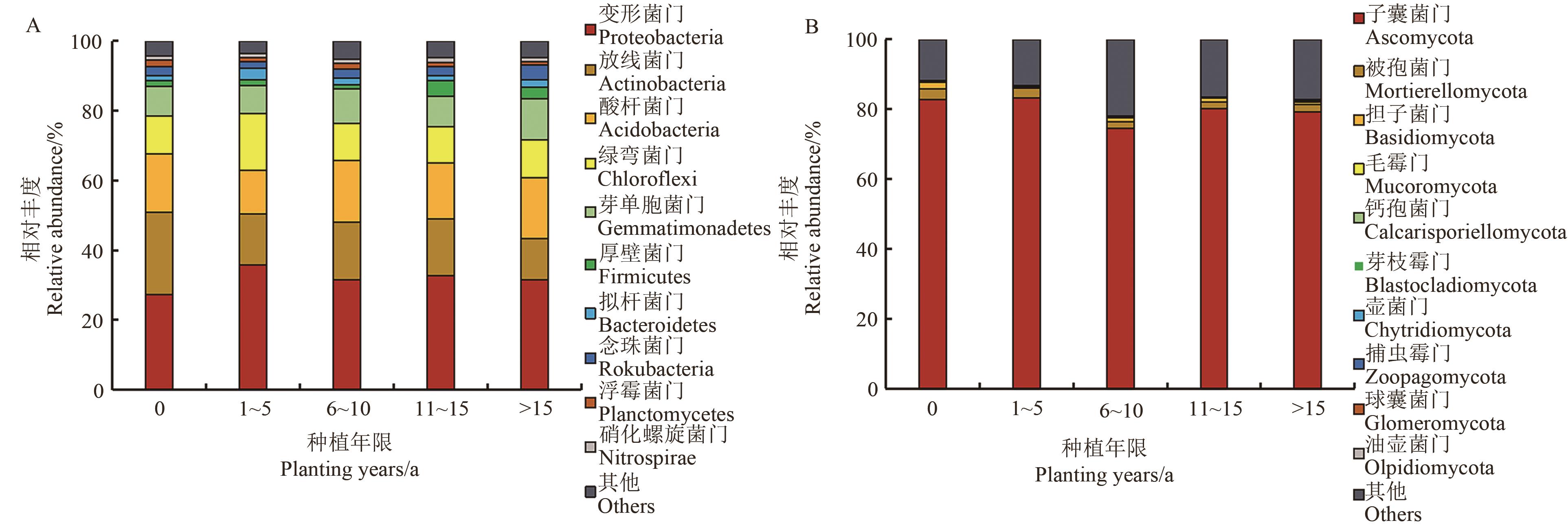 Table 4 Community diversity index of bacteria and fungi in vineyard soils with different planting years