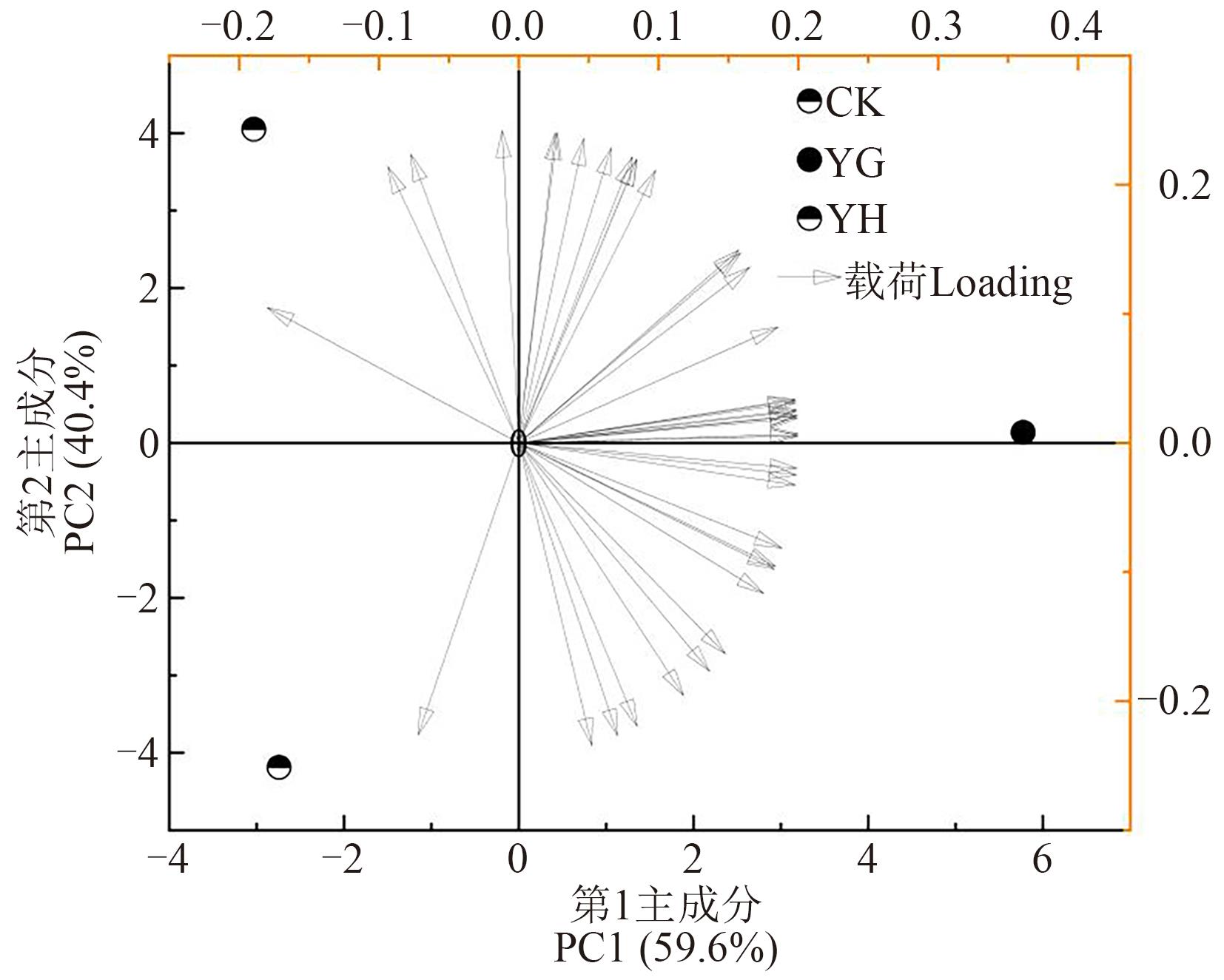 处理 Treament | 第1主成分 First principal component | 第2主成分 Second principal component | 综合得分 Comprehensive score | 排序 Ranking |