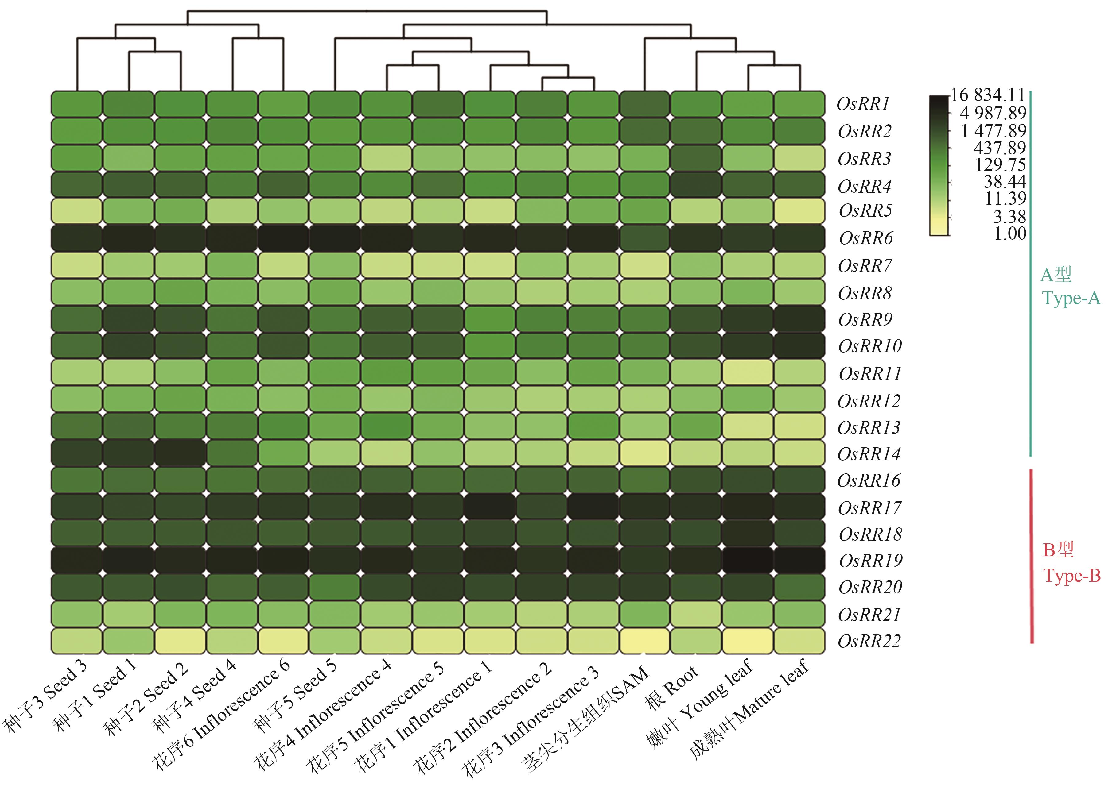 Fig. 4 Differential analysis of tissue-specific expression of rice RR genesNote: The colors in the figure indicate the expression level of the genes, the darker the color the higher the expression.