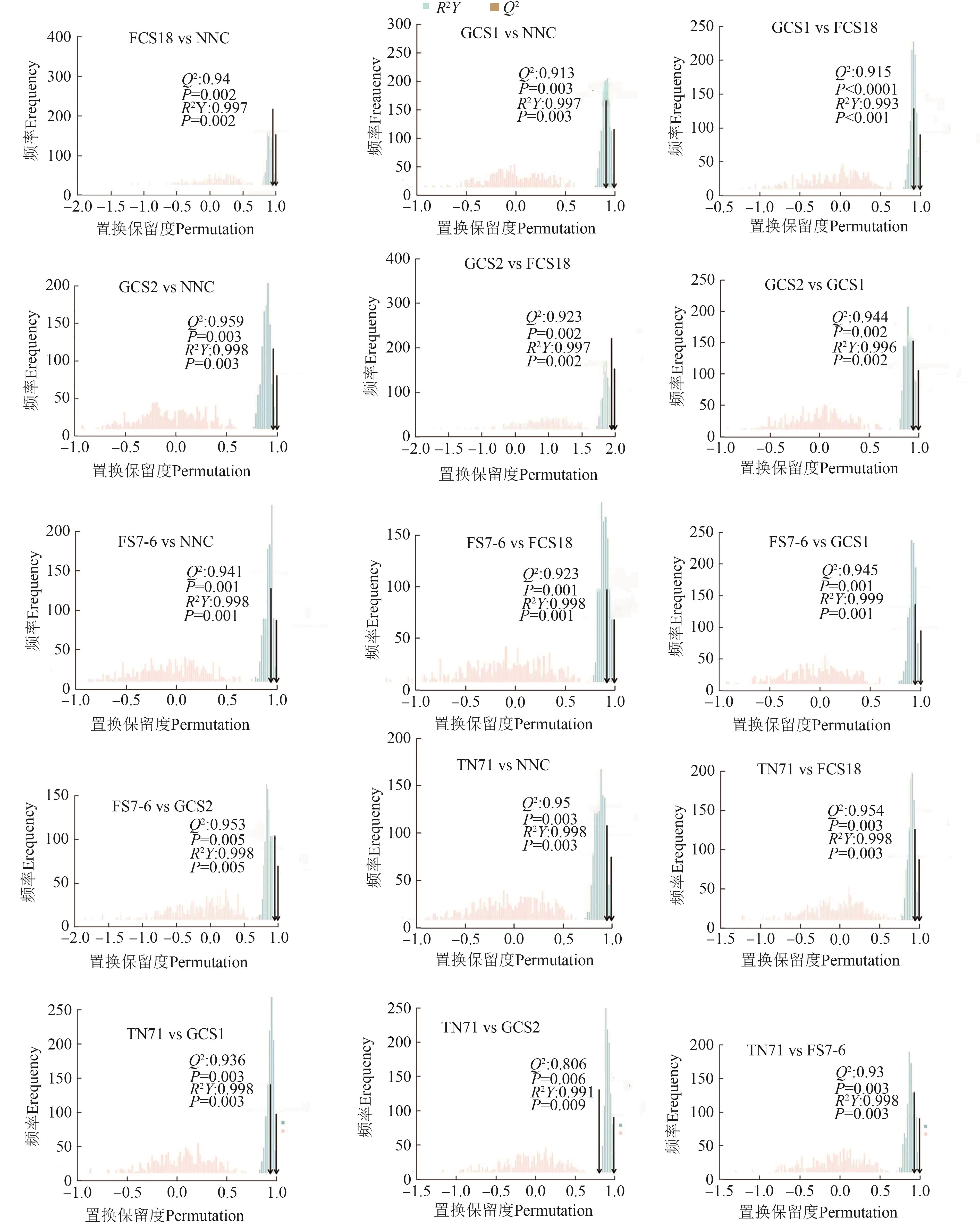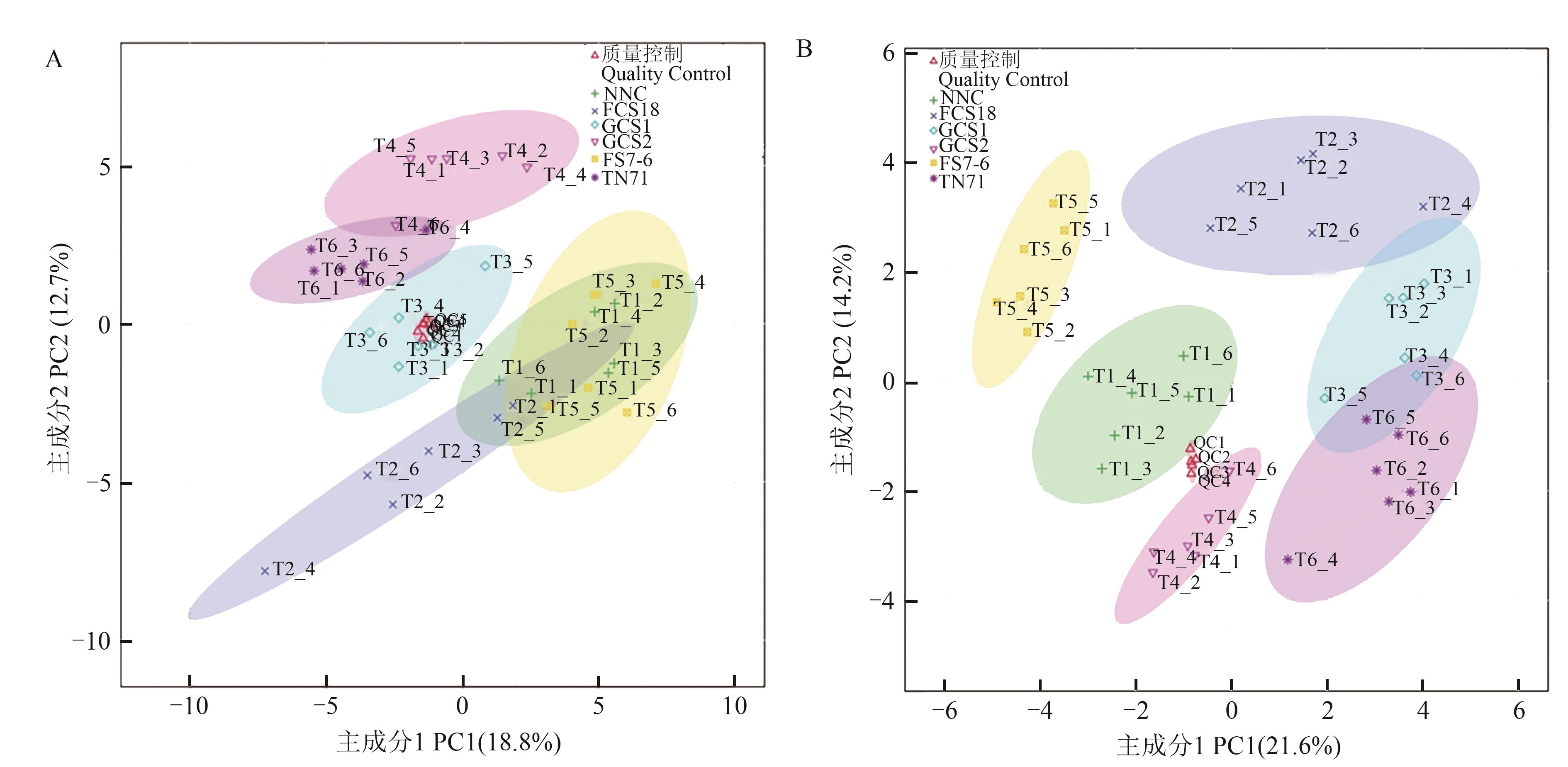 为研究代谢产物对甘薯生长发育的影响,以甘薯茎尖为研究对象,利用液相色谱-质谱联用(liquid chromatograph-mass spectrometer,LC-M)分离鉴定南宁菜、福菜薯18号、桂菜薯1号、桂菜薯2号、福薯7-6和台农71共6种菜用甘薯的差异代谢产物,探讨代谢途径的差异。结果表明,6个甘薯品种共得到差异代谢物4 210种,其中上调2 229种,下调1 981种,表明不同甘薯品种间存在显著差异。差异代谢物涉及的代谢途径主要包括初级胆汁酸生物合成、吲哚生物碱生物合成、黄酮和黄酮醇生物合成和色氨酸代谢,且不同品种间差异代谢物的积累和代谢途径也存在较大差异。因此,推测差异代谢物的积累和代谢途径的差异对甘薯品质起着关键作用。以上研究结果为进一步分析不同品种甘薯品质差异的机制奠定了基础。