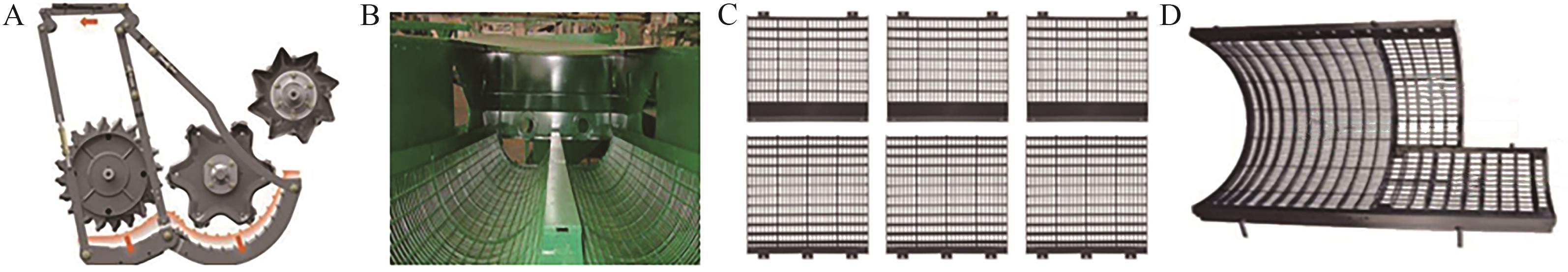 Fig. 8 Different combine harvester concave plate screen devicesA: CLAAS LEXION 8700-7600 series; B: John Deere R2 300 series; C: Kubota WRH1200; D: Yanmar AG600A
