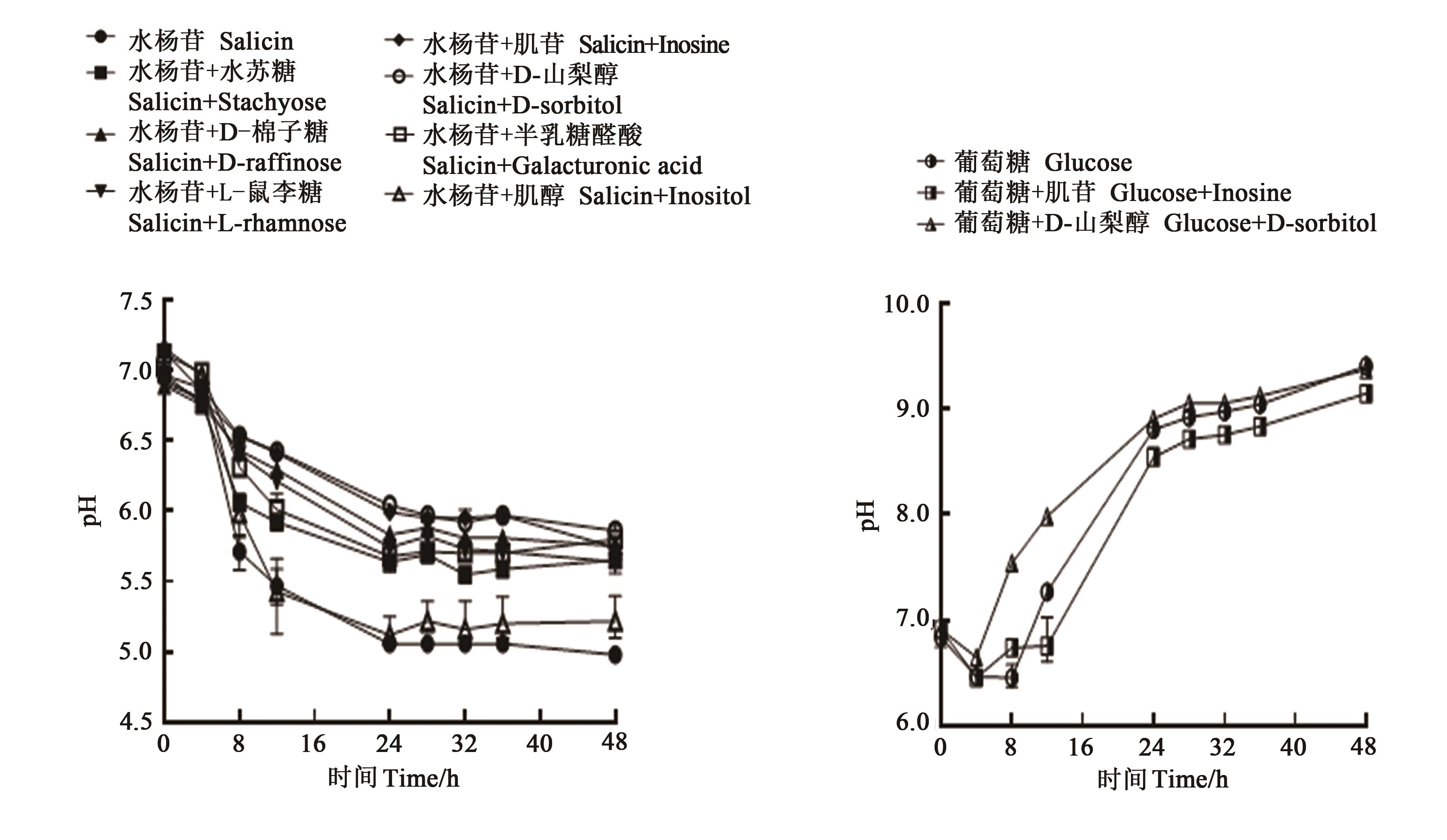 D-麦芽糖 D-maltose | 161 | ++++ | D-果糖 D-fructose | 211 | + | ρ-羟基-苯乙酸ρ-hydroxy-phenylacetic acid | 151 | + |