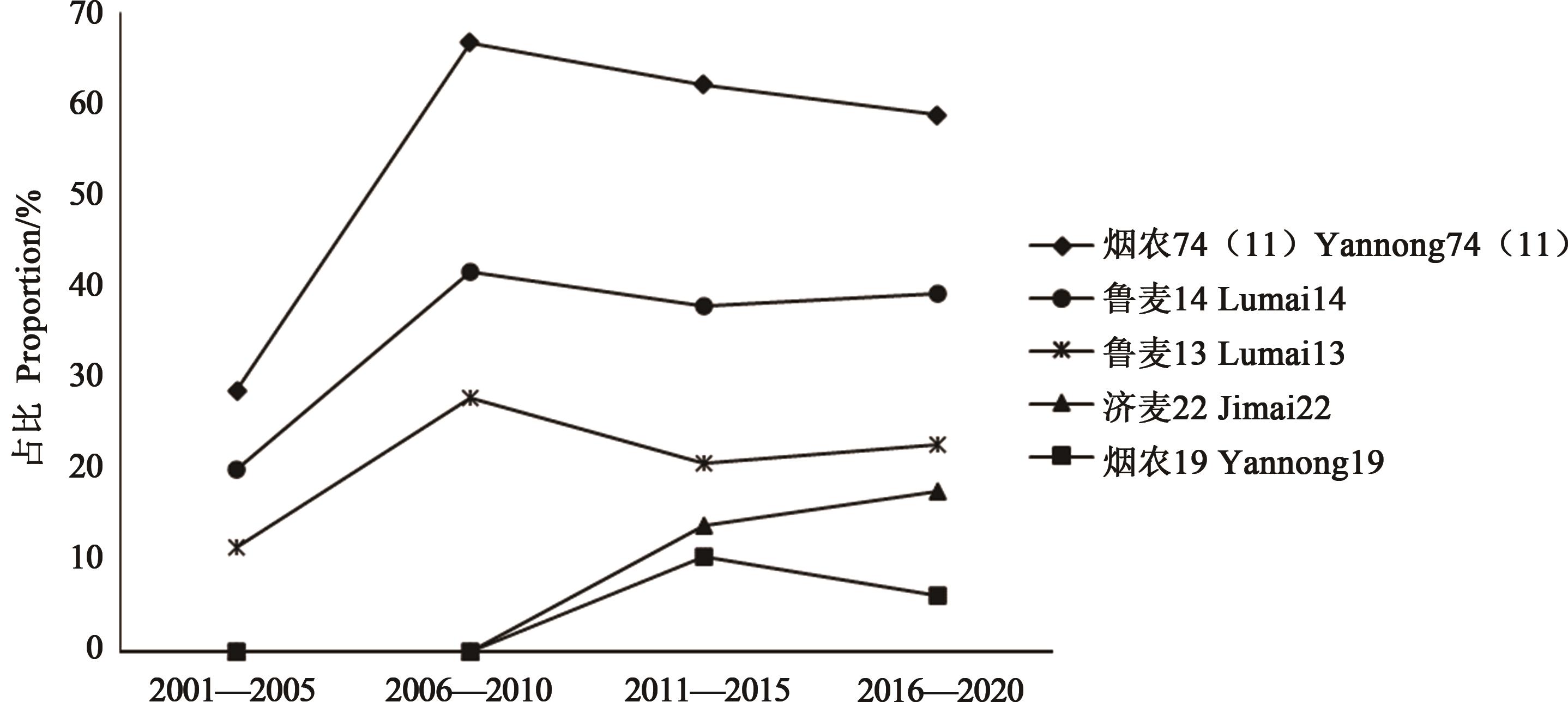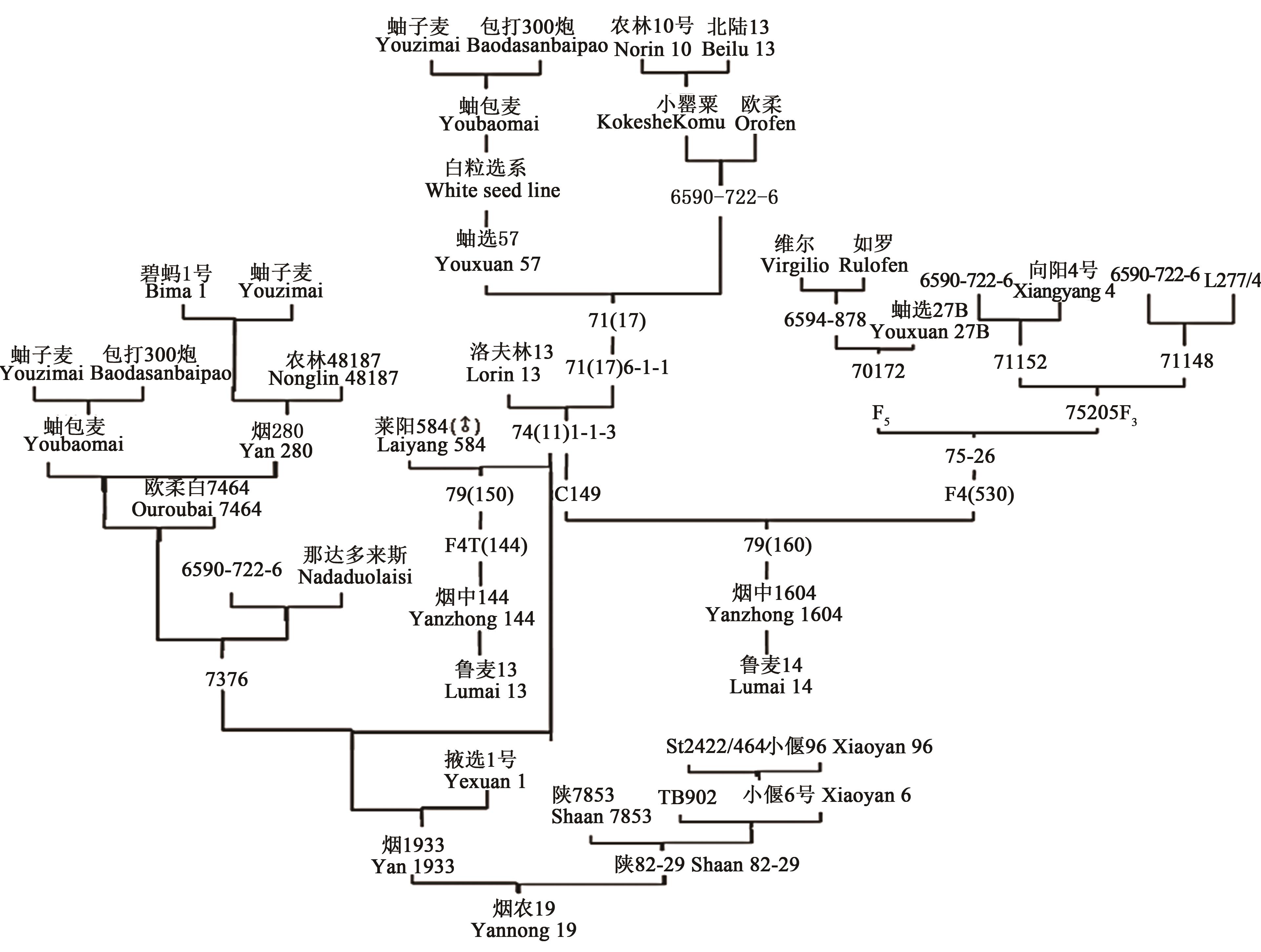 20 | 良星66 Liangxing 66 | 58 | 青丰1号矮系 Qingfeng 1(dwarf line) | 96 | 小偃6号 Xiaoyan 6 |