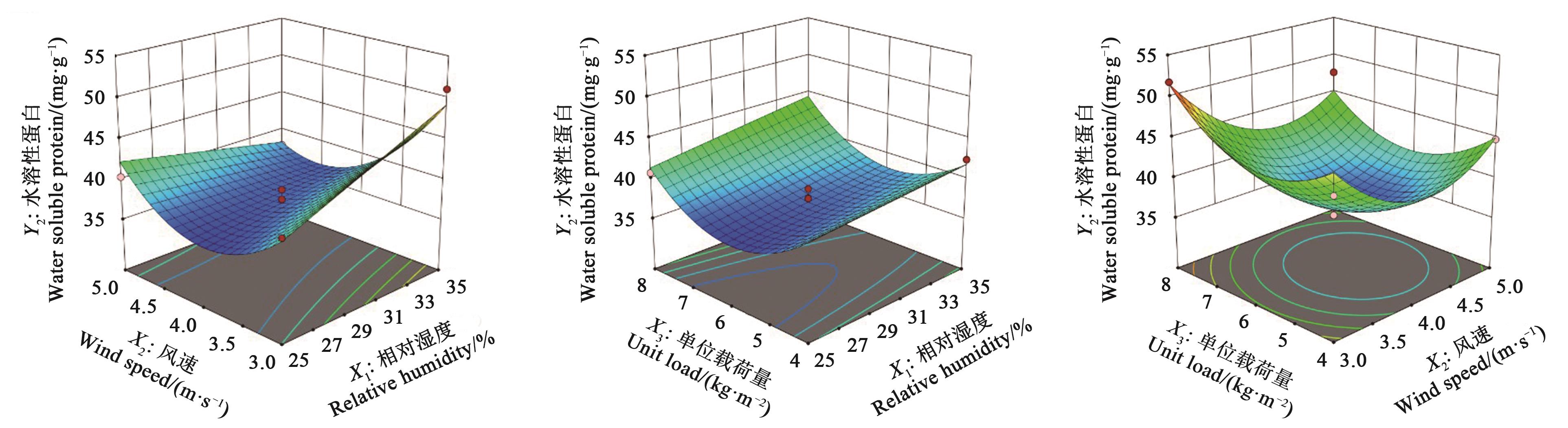 响应值 Response value | 色差 Chromatic aberration | 水溶性蛋白含量 Water-soluble protein content/(mg·g-1) | 干燥时间 Drying time/h |
