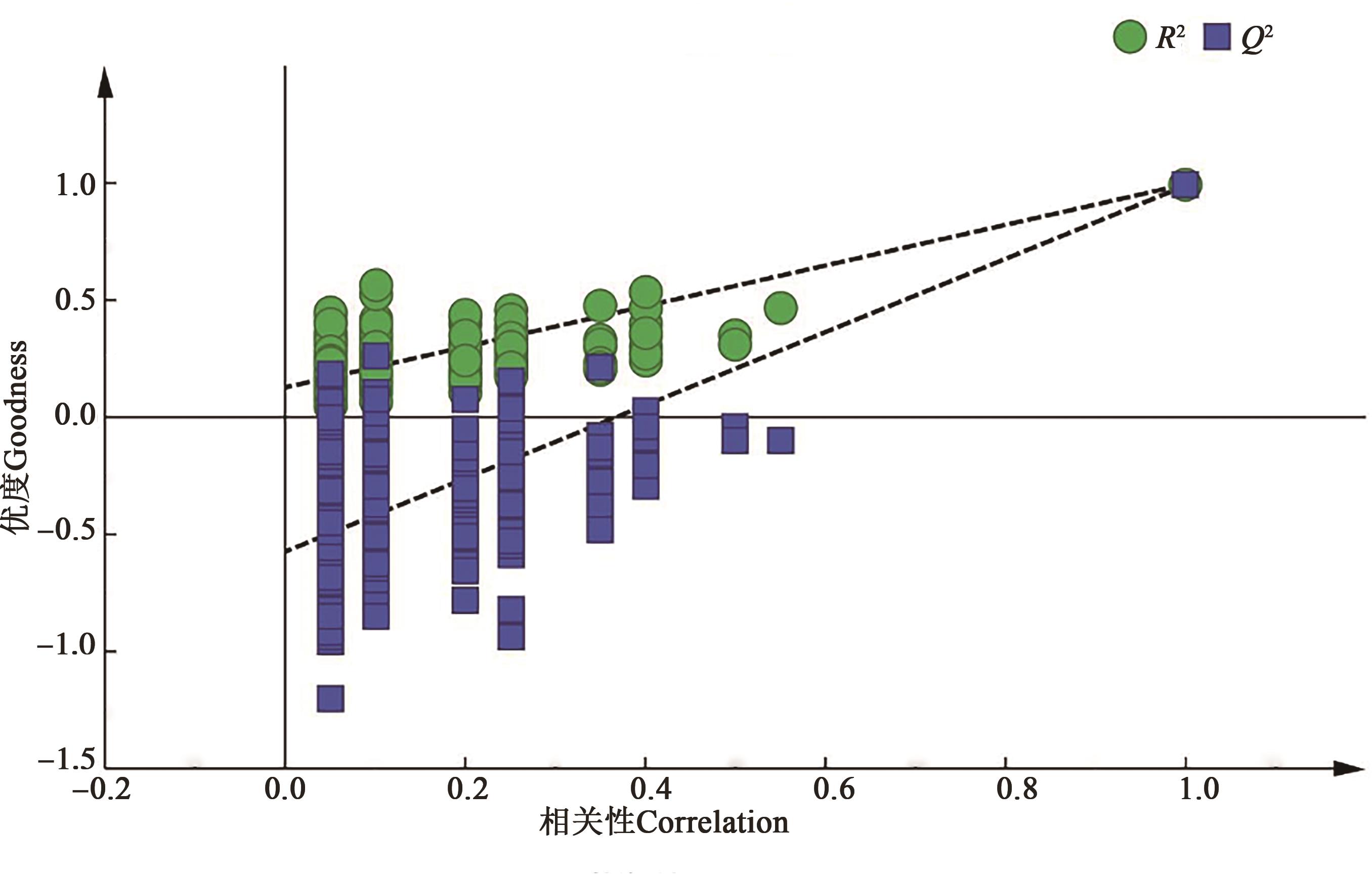 预测主成分数 Number of prediction principal component | 正交主成分数 Number of orthogonal principal component | 自变量拟合指数 R2X | 因变量拟合指数 R2Y | 模型预测指数 Q2 |